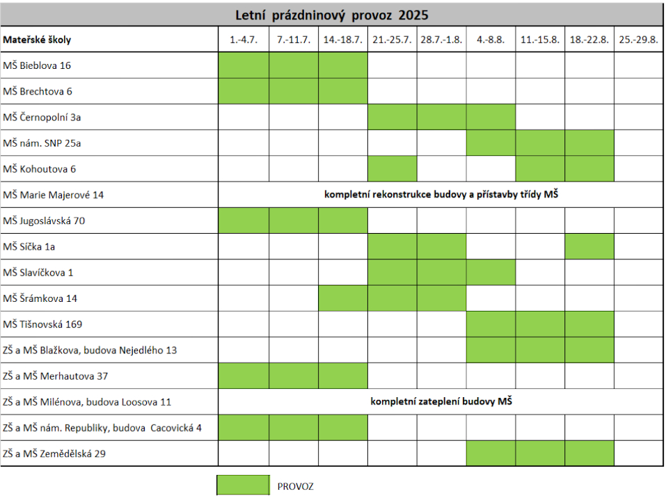 V případě zájmu o přihlášení dítěte na prázdninový provoz do náhradní mateřské školy v MČ Brno‑sever se obracejte přímo na vedení konkrétní mateřské školy.